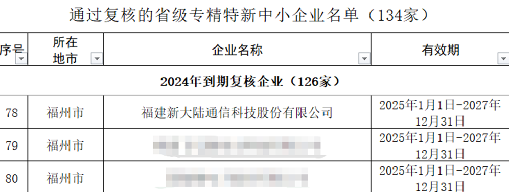 7月29日,新大陸通信公司憑借卓越的創新實力與深厚的產業積淀,通過福建省“專精特新中小企業”復核認定,資質有效期再延三年。